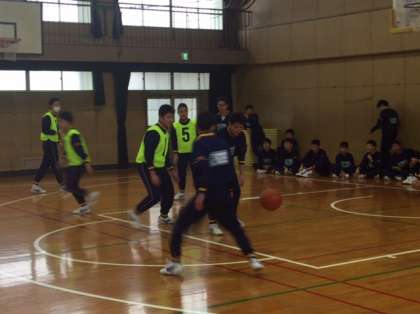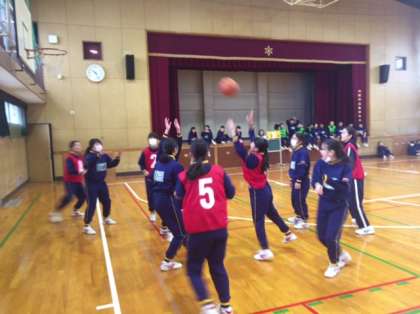 3年体育の授業の様子です。男女ともバスケットボールの試合を行っています。う〜ん。頭で考えているより身体が動かないのか、ボールをうまくコントロールできていませんね〜。でも楽しそうにゲームをしています。