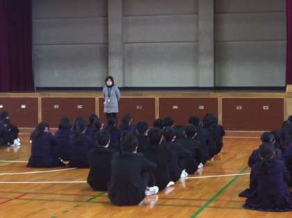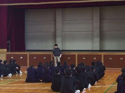 6時間目、3年生は体育館で明日からの私学入試の事前指導を行いました。高島先生から最後まで諦めずに頑張ることや明日の天候が雪になる可能性もあるので早いめの行動・複数の経路を考えておくことなどの注意がありました。全員合格を目指して頑張りましょう!