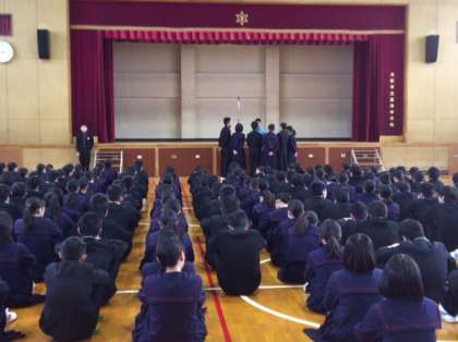 2月20日、全校集会が行われました。高田先生から正しいことがもっとしっかりと出来ないと集団が崩れていくのはすぐだ。今一度、 高いレベルの生活習慣を身につけていこうという話がありました。その後、校長先生からしっかりと勉強の力とそれをどんな時でも活用出来る応用力を身につけようという内容で、「学歴」と「学習歴」についての話がありました。