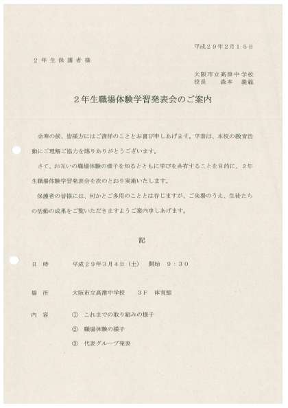 保護者の方も、ぜひご来校いただき、生徒の活動の成果をご覧ください。