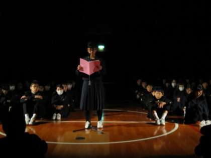 1、2年生から感謝の気持ちをビデオで伝え、代表生徒が挨拶をしました。