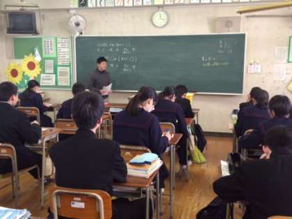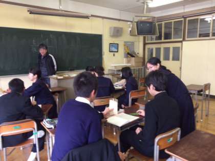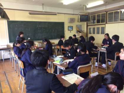 本日2・3・4時間目、相互参観授業(2年数学)が行われました。「確率」の単元です。コースに分かれての習熟度別少人数授業を実施しています。手づくりのくじを実際に引いて考えていきます。