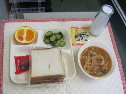 3月10日(金)本日の給食は、みそきしめん、あっさりきゅうり、清見オレンジ、いり黒豆 です。食パンとイチゴジャムがつきます。