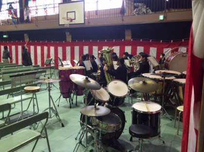 おかげさまで滞りなく会場を中心に控え室、受付などの準備が完了しました。その後、答辞・送辞・吹奏楽などの練習が行われました。