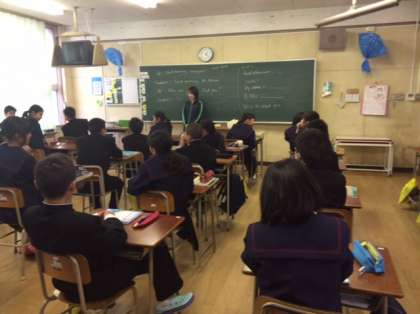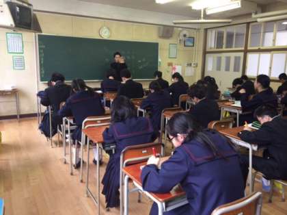 午前のオリエンテーションが終了し、5時間目からは授業です。1年生、最初の授業です。1年3組は英語、Hello!My name is〜.I like〜.皆さんいい発音ですね。4組は社会です。席の順番に世界の国の名前をあげていきました。最近できた新しい国の名前も出ました!いくつ答えることができるのでしょうか?