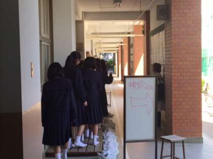 本日午後から1年生の内科検診を行いました。静かに整列して保健室へ入り、検診を受けます。一泊移住の事前検診も兼ねています。