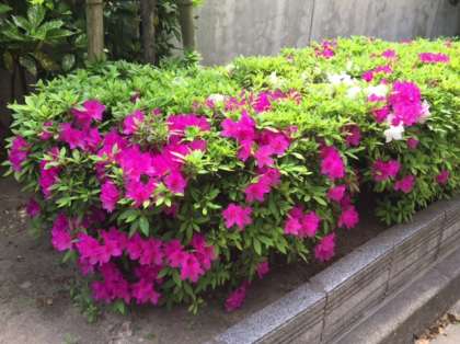 ゴールデンウィークの真っ只中です。校舎裏、東側植え込みのツツジがきれいに咲いています。