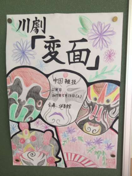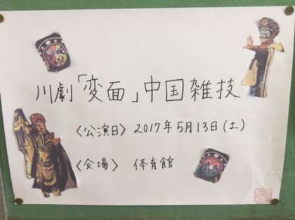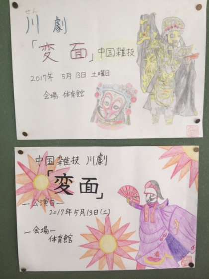 5月13日(土)の土曜授業において芸術鑑賞会を開催します。内容は中国雑技・川劇「変面」などです。楽しみですね。校舎の廊下や教室などにポスターが掲示されていますので、毎日紹介していきます。