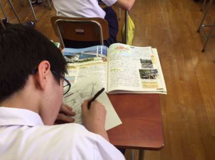 2年社会の授業の様子です。中国・四国地方の学習です。本州四国連絡橋・3つのルートを学習し、どのような変化が起こったか考えました。