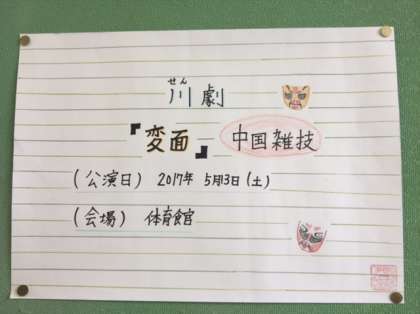 芸術鑑賞会の案内ポスター紹介第4弾です。演目は「変面」の他、椅子を使った曲芸など様々な技が用意されています。
