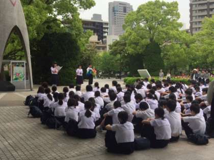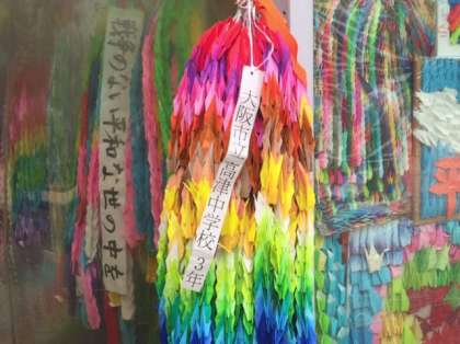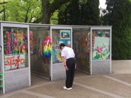 宣言文のあとは、三年生みんなで作った「千羽鶴」を代表生徒が献げました。心のこもったセレモニーでした。