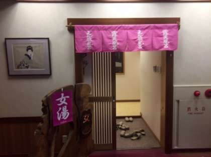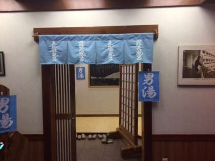 大浴場です。えんか風呂と書かれています。普段は浴場にいろいろな演歌が流れているそうです。廊下には冷たいお茶が用意されています。