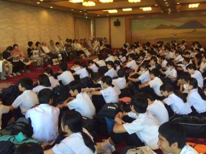 いよいよ民泊です。33家庭に分かれて生活します。その家庭の方々との対面式を行いました。