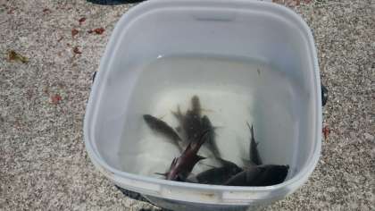 釣りをするグループがいました。お〜、何匹か釣れていますねぇ。晩御飯のおかずになるのかな?