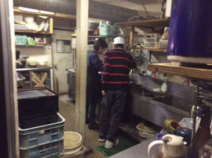 海岸近くの食事処にお世話になるグループです。裏山に竹の子を採りに行き、処理をしたそうです。お昼時は店の手伝いです。先ほどの竹の子を竹の子ごはんにして店に出すそうです。