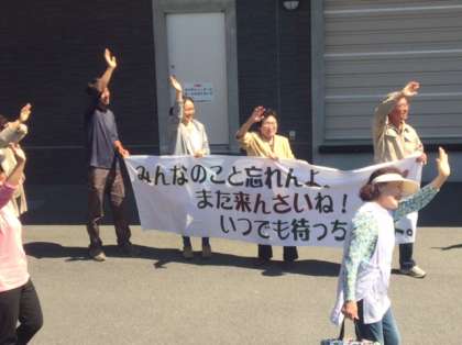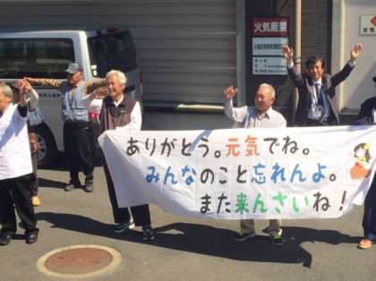 さようなら。お世話になりました。お元気で〜。横断幕が掲げられ中、バスは発車していきました。