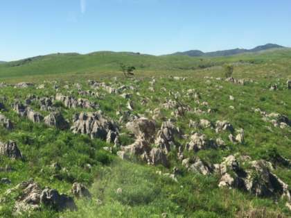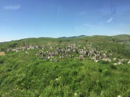 秋芳洞を出たあとはバスで秋吉台に向かいました。バスを停車した状態での見学でしたが、素晴らしい天気と景観でした。まるで絵はがきのようです。