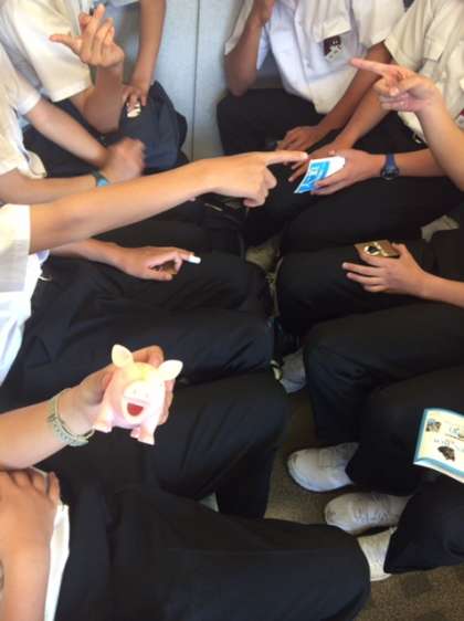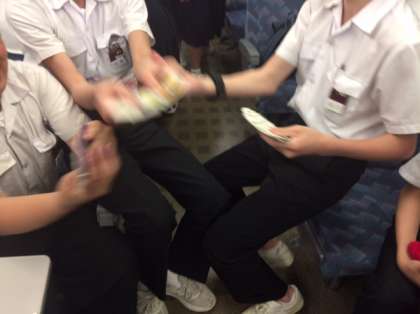 新大阪に向かっています。疲れていると思いますが、最後の力?を振り絞ってカードゲームをしています。