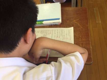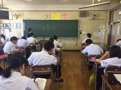 2年国語の授業の様子です。小テストの答えの解説を行っています。中間テストが来週に迫っています。出来ていないところは確実に復習しておきましょう。
