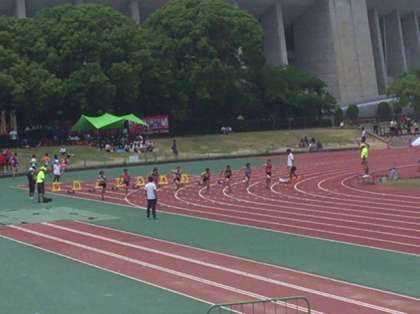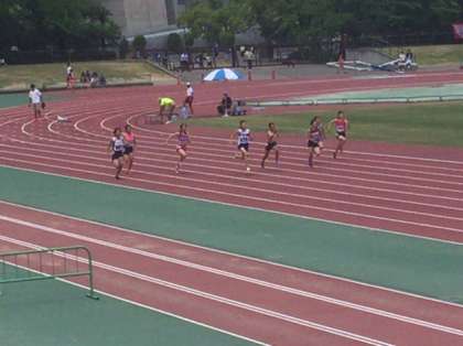 長居陸上競技場では昨日に引き続き、陸上競技が行われました。男子200mと女子100mで決勝に進出しました。しかも女子100mでは3年生の青山さんが12秒42の好記録で優勝しました。この記録は全国大会の標準記録を突破していますので、夏に九州で行われる全国大会の出場資格を得たことになります。おめでとうございます。