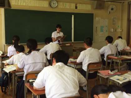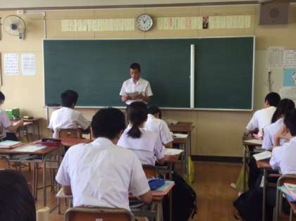 3年英語の授業の様子です。スピーチ発表を行っています。教科書にある手紙文を朗読します。それを全員で採点していきます。声の大きさ、姿勢、発表力を各5点でつけていきます。さて、本日のピカイチさんは誰になるのでしょう。