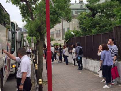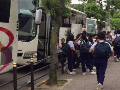 3台のバスにわかれて乗車し、出発です。お見送りの皆さん、ありがとうごさいました。いってきます。