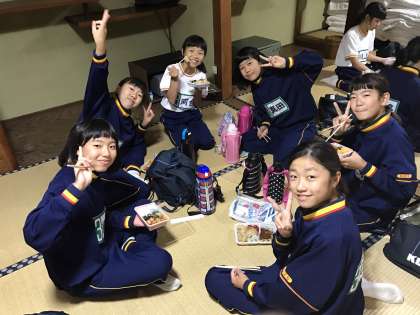 お昼ごはんの様子です。各自で用意したお弁当を楽しそうに食べています。現在の気温19度。かなり涼しいです。