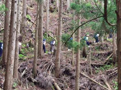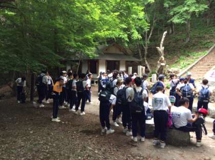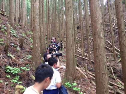 細い山道を一列になって登っていきます。途中、すれ違う下山する人達と「こんにちは」とあいさつを交わします。