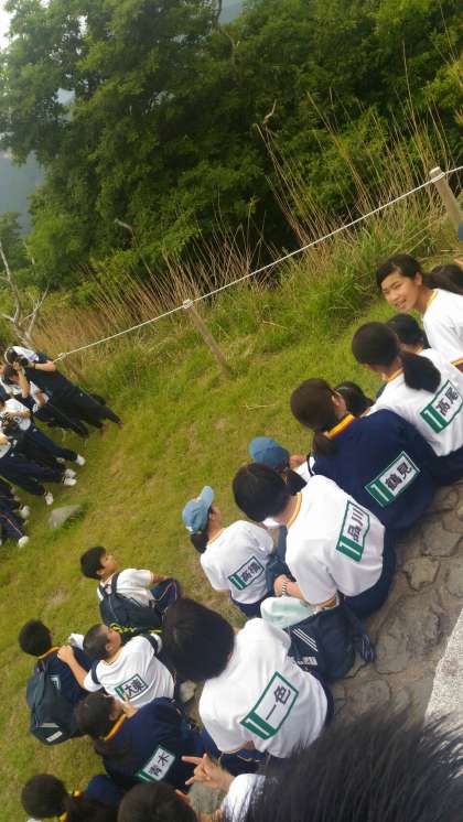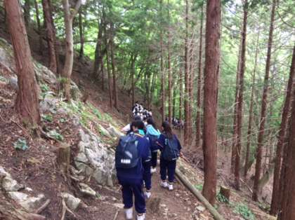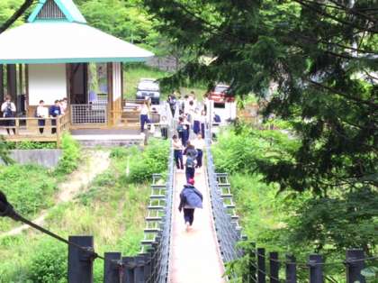 絶景からお別れして下山します。下りは登りより危ないので注意して歩かなければなりません。気をつけてください。最後の橋を喜んで走っている生徒がいました。