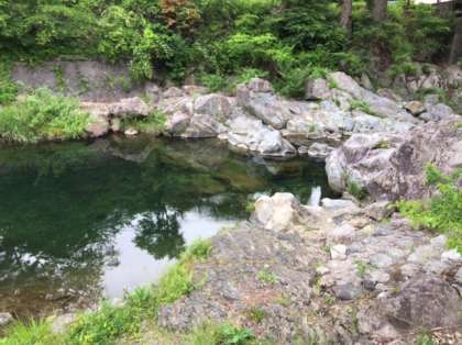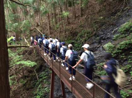 下山した後は、トイレ休憩をとって旅館に戻ります。今度は、みたらい遊歩道を歩いて旅館まで帰ります。