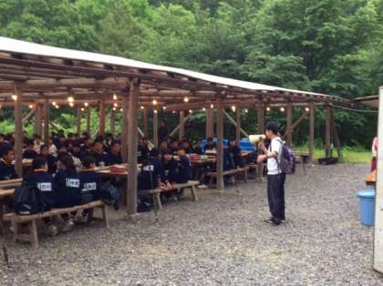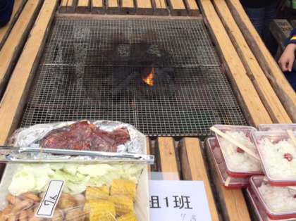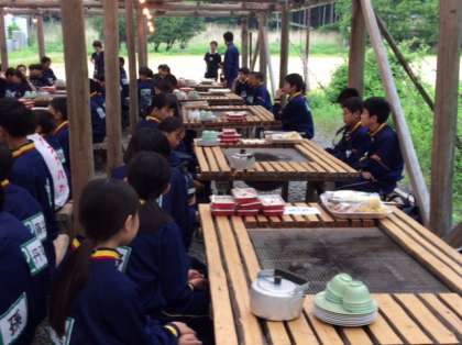 夕食はバーベキューです。各班に分かれて食べます。ご飯はおかわり自由です。
