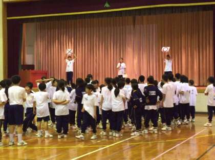 問題に答えてマルとバツに別れるゲームです。先生ネタが飛び出しました。