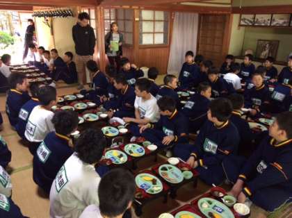 朝食時間になりました。これからオリエンテーリングを行います。しっかりと食べましょう。