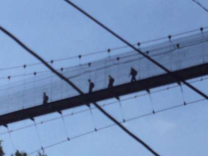 怖そうな吊り橋ですね〜。下から見てると落ちてきそうです。
