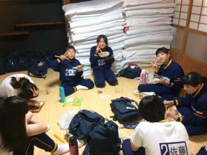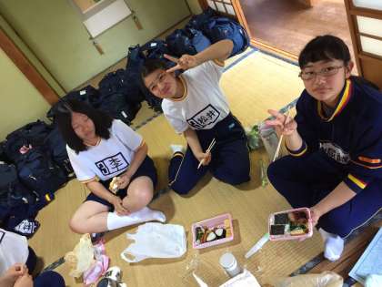2年生は予定より早く到着しました。旅館に入って各自で用意したお弁当を食べました。いよいよ登山に向かいます。