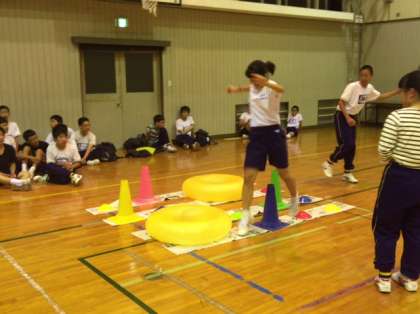 進行係から問題が出され、答えをリレーしていきます。ただし様々な障害物が待ち受けています。