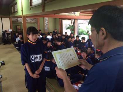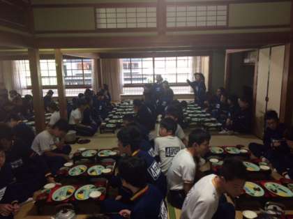 朝食終了後、昨日のレクリエーション(室内オリンピック)の表彰式を行いました。優勝は3組です。おめでとうございます。先ほどの朝食のコマは21は22の間違いです。