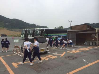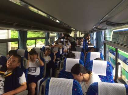 バスで学校に向かっています。トイレ休憩を入れて、吉野路大淀バスセンターを14時15分に出発しました。