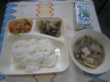 本日の献立は豚肉の梅風味焼き、すまし汁、切り干しだいこんのいため煮です。