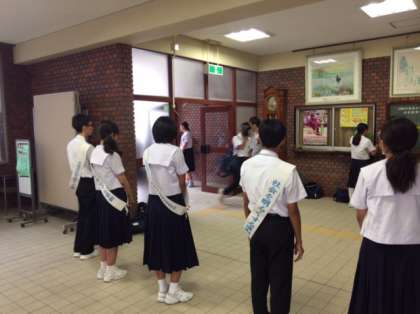 生徒会役員の皆さんもタスキをかけて運動に参加しています。