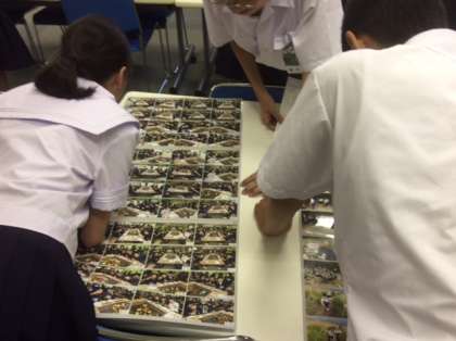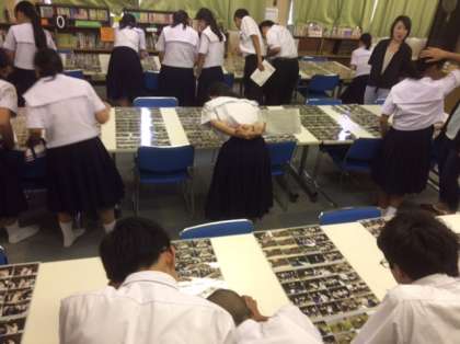 本日午後から1年生は一泊移住の写真を選びました。中学生になって初めての泊行事でした。楽しかったことを思い出しながら選んでいます。