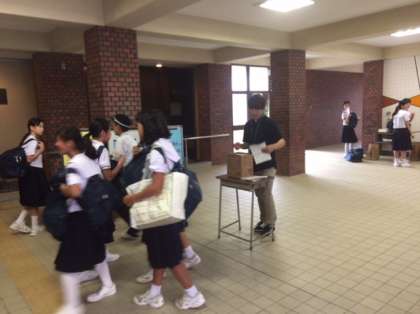 7月10日登校時、玄関ピロティにおいて一泊移住の写真の申し込みを行いました。明日11日も行いますので、忘れずに申し込みましょう。