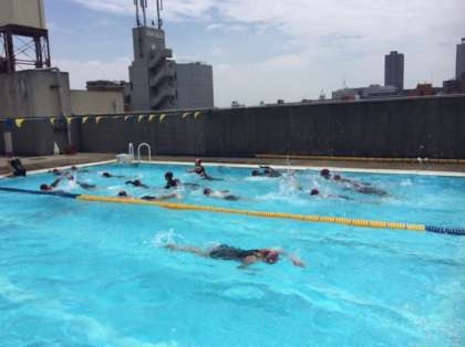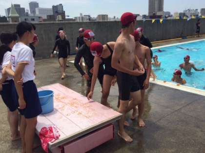 3年体育の授業の様子です。バタフライなどの泳法練習の後は恒例の「12分間泳」です。25m泳ぐごとに輪ゴムを手首に巻いていきます。さて、12分間で25mを何本泳げるでしょうか。男子は26本、女子は27本が最高だったようです。
