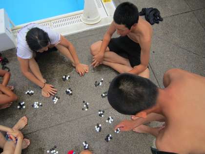 最後は、恒例の碁石ひろいです。みんなもぐって碁石を集めています。どれだけ集めれたかな。