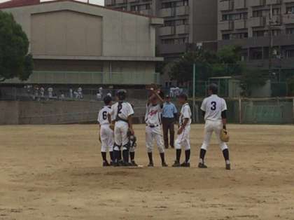 終盤に守備のミスや四球で先制され、さらに加点されました。