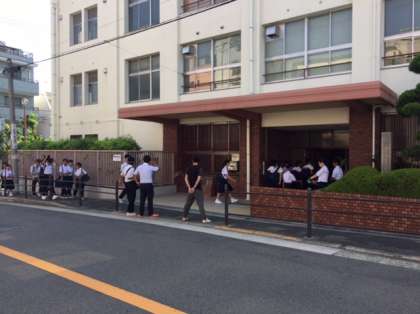 7月20日、1学期の終業式を迎えました。最後の登校の様子です。笑顔の人が多いですね〜。