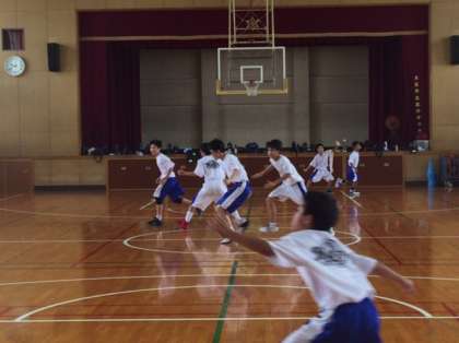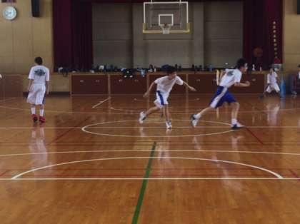 7月24日、午前中の部活動の様子です。体育館では男子バスケットボール部が活動しています。
