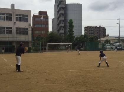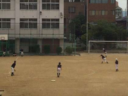 グランドでは野球部が活動しています。バンド守備の練習をしています。