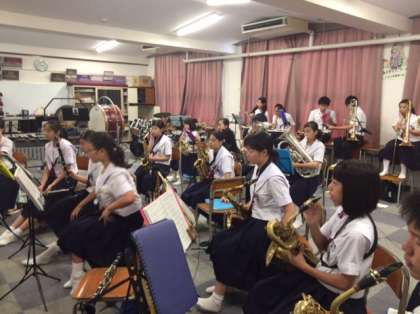 7月25日、少し天気があやしいですが、皆さん元気に活動しています。水泳部は大阪府大会に参加しています。