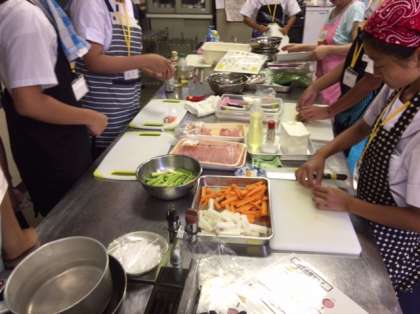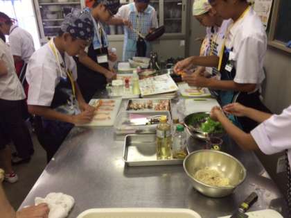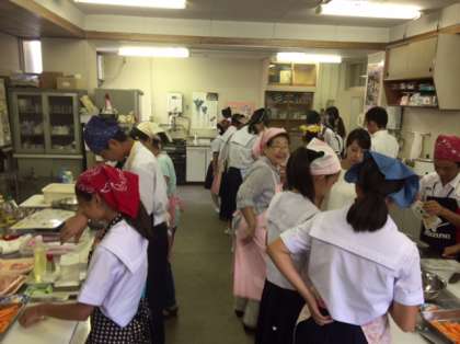 8月3日、天王寺区三中合同保健委員会が保健福祉センター分館において行われました。本校からも保健委員9名が参加しました。「中学生クッキング」として調理実習を行いました。メニューは、炊き込みご飯・シリアルバー・豚肉の三色巻き・切干大根サラダです。うまく作れたかな?